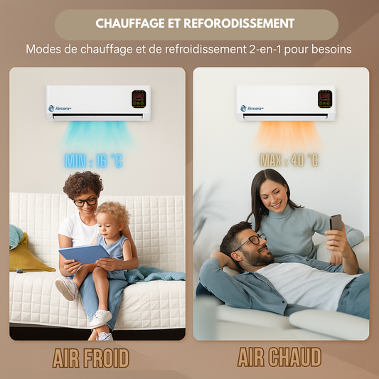❄️🔥 2-en-1 Climatiseur Mural & Chauffage – Chaud/Froid avec Télécommande + Cadeaux Offerts 🎁